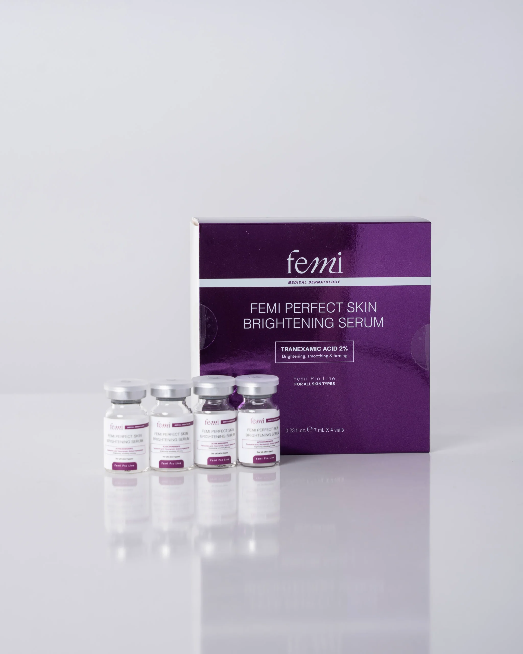 Tinh chất dưỡng trắng da Femi Perfect Skin Brightening Serum không chỉ giúp làm mờ vết thâm nám, giúp da sáng và đều màu hơn mà còn có khả năng kháng viêm, chống dị ứng, làm dịu da. Đặc biệt an toàn với mọi loại da từ da dầu đến da nhạy cảm.